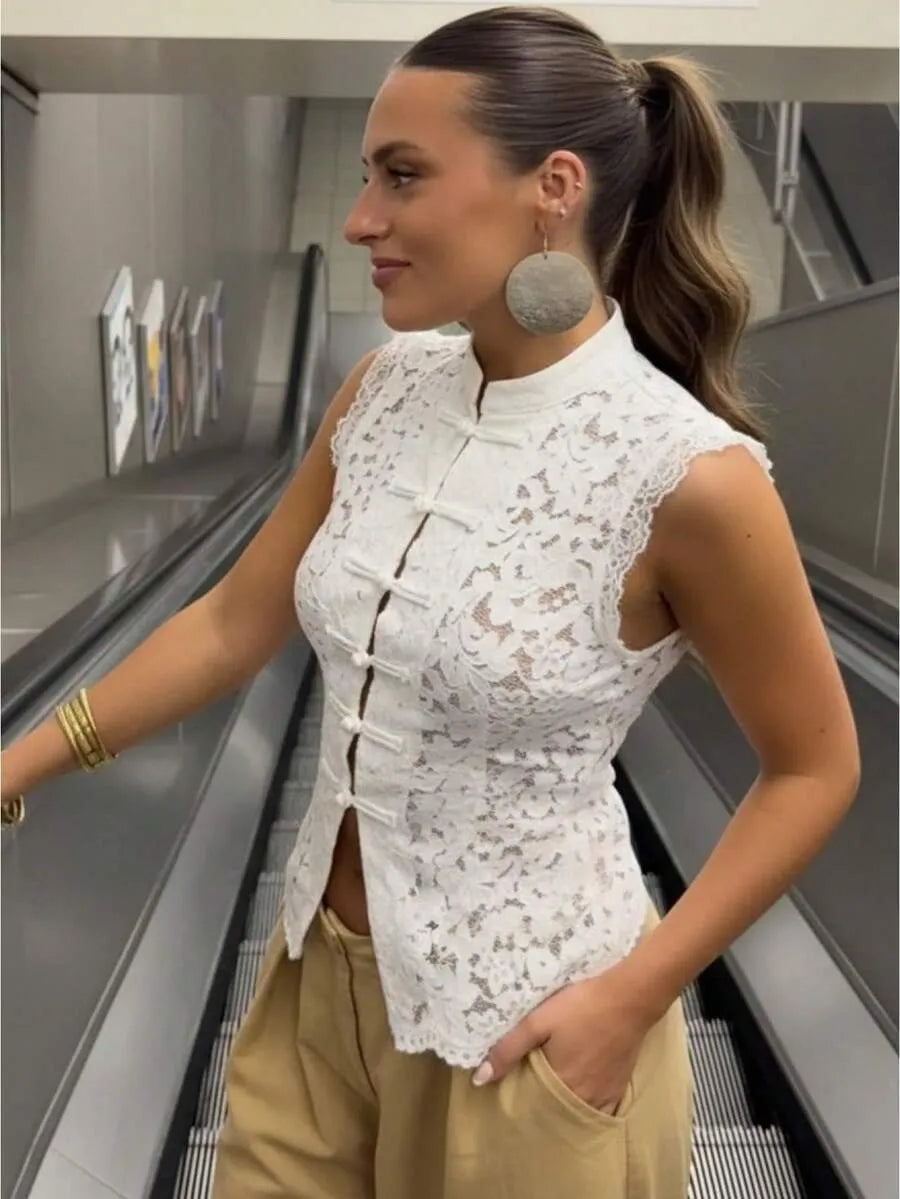Blusa de encaje sin mangas
