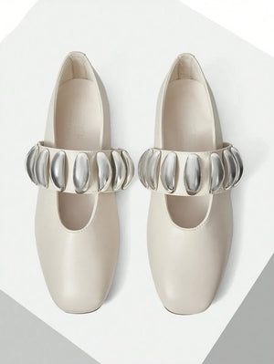 ZAPATOS PLANOS DECORATIVOS DE PLATA