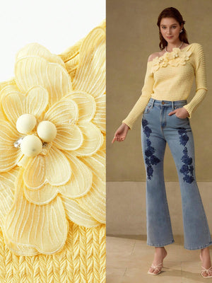 TOP de corte ajustado con flor estereoscópica, hombro asimétrico
