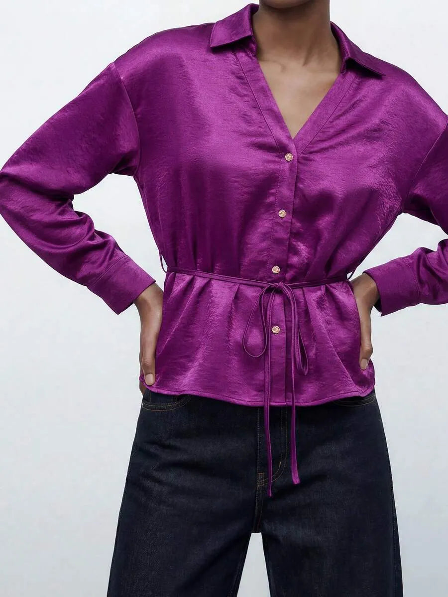 Camisa de mujer de satén morado