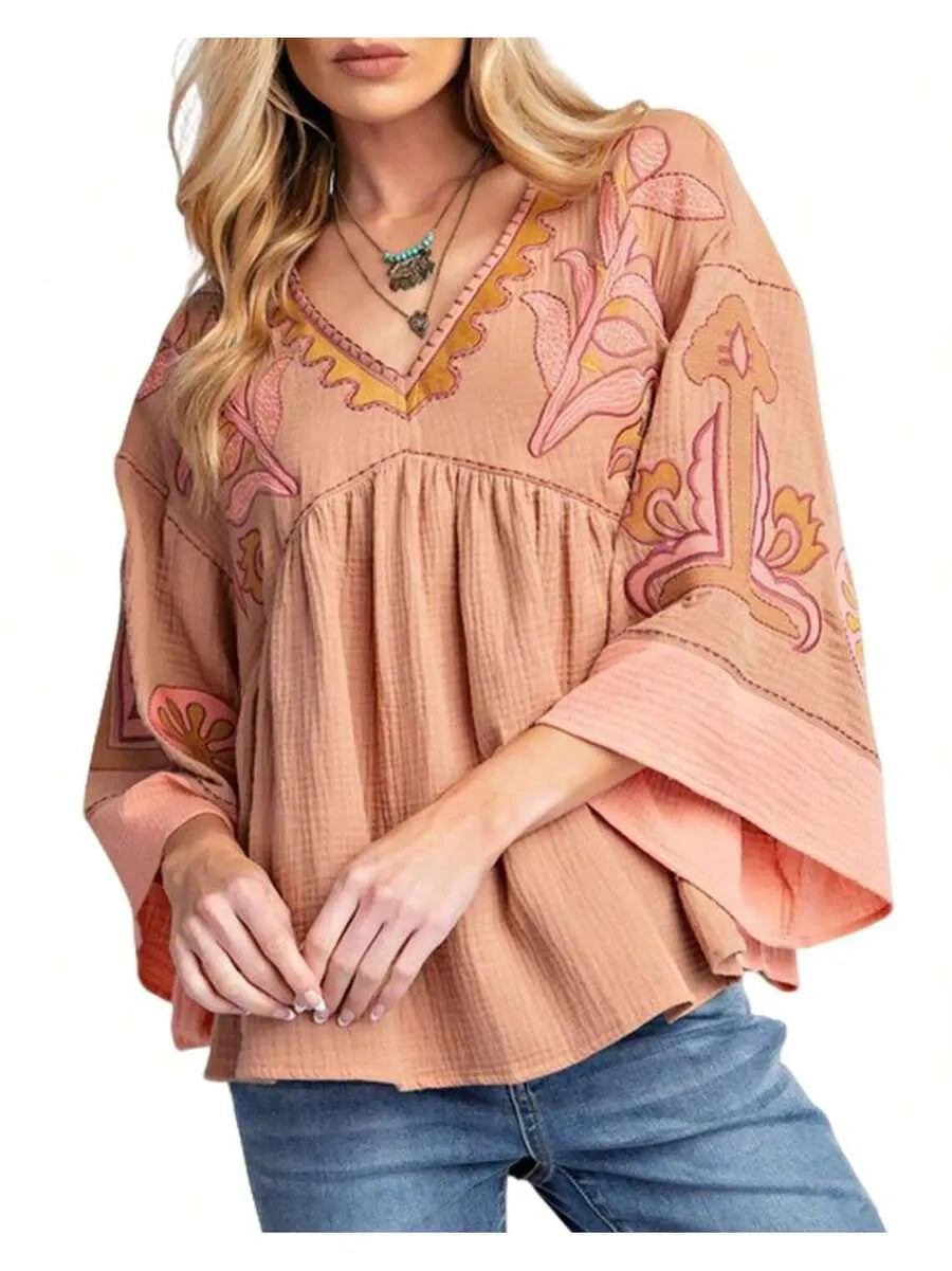 Blusa elegante con diseño retro de cuello