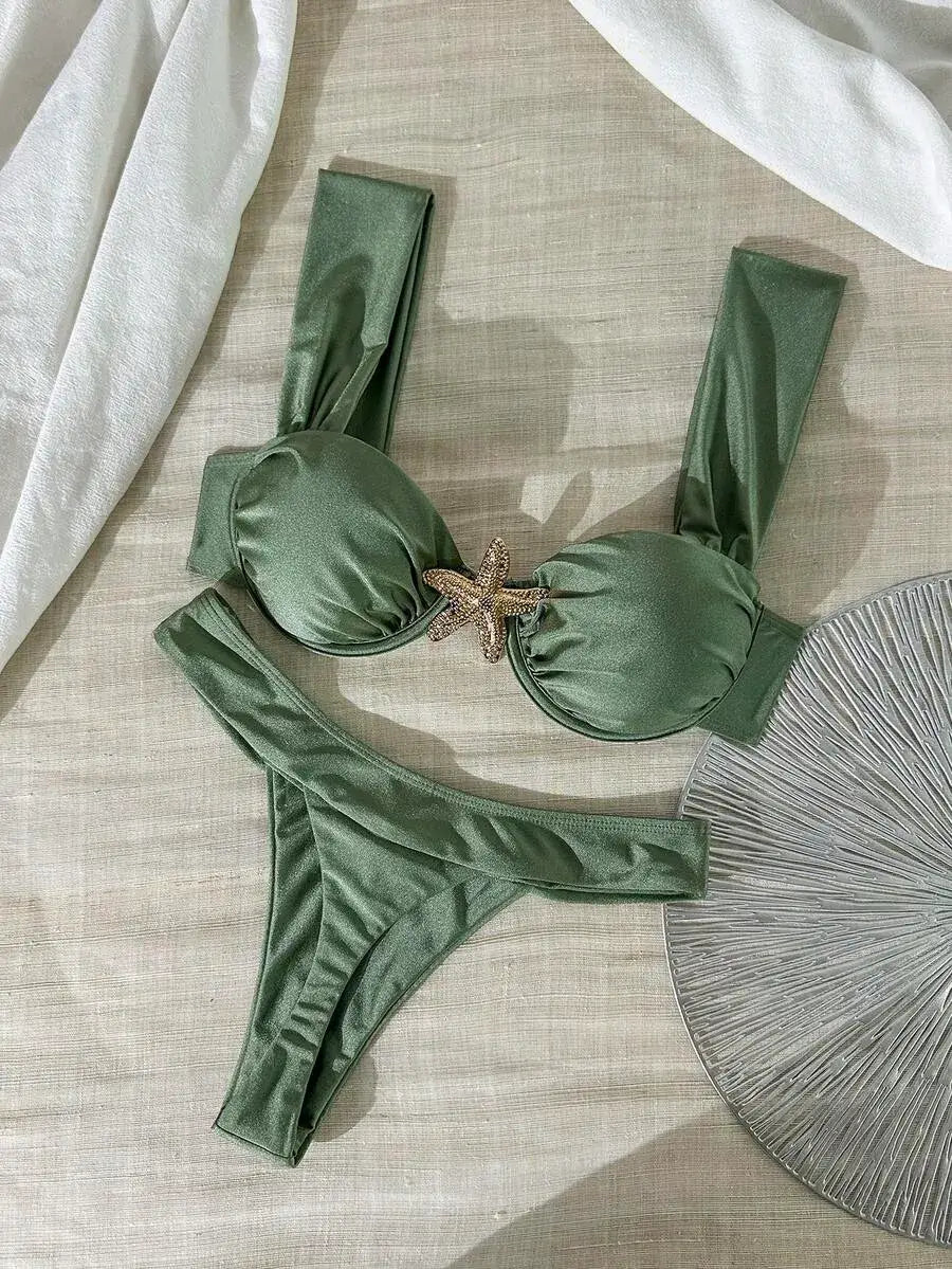 Bikinis de dos piezas: Perfectos para resaltar tus curvas y añadir un toque atrevido. Desde tops con mangas largas, detalles cutout o con estampados tropicales, hasta bottoms con tiras ajustables o detalles brillantes. ¡Elige el look que eleve tu confianza al máximo!