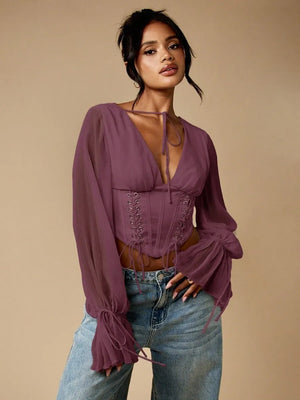 Blusa de chifón con corpiño de corsé