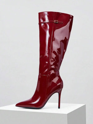 Botas altas elegantes patentado color vino