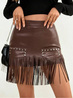 Falda cuerina flequillos